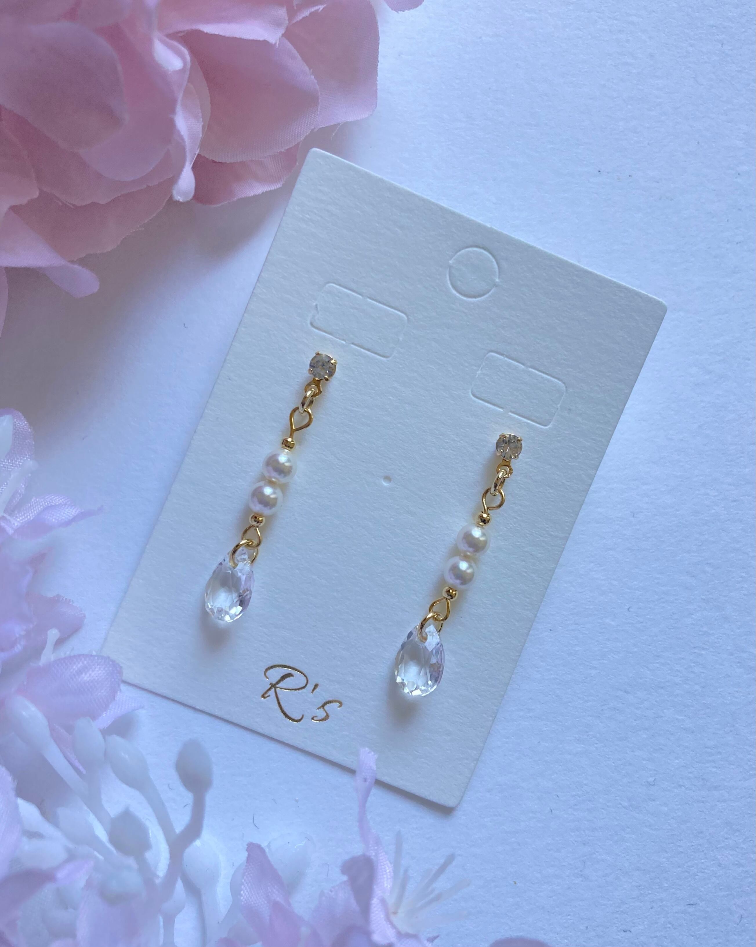 クリアなスワロフスキーとパールの上品なピアスです。